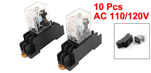 AC 110/120V Coil Red Indicator Light DPDT 8 Pins Power Relay + Socket Base