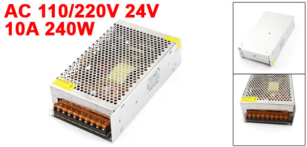 Item Name Switching Power Supply Model No. S-240W Power Type Constant Voltage Input AC 110/220V ±15% Output DC 24V, 10A Power 240W Size 19 x 10.5 x 5cm / 7.5" x 4.1" x 2" (L*W*T) Case Material Metal Main Color Silver Tone Net Weight 681g Package Content 1 x Switching Power Supply - Reviews