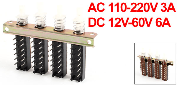 AC 110-220V 3A DC 12V-60V 6A 4PDT 4 Rows Interlock Push Button Switch