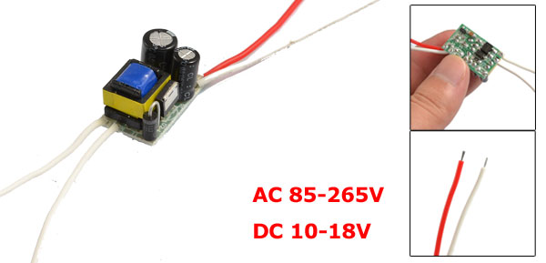 Product Name LED Power Driver Application for (4-5) x 1W LED Input Voltage AC 85-265V Output Voltage DC 10-18V Constant Current 300mA±5% Conversion Efficiency 80% Size (not include cable) 25 x 15 x 16mm/ 1" x 0.59" x 0.63" (L*W*H) Material Electronics Weight 7g