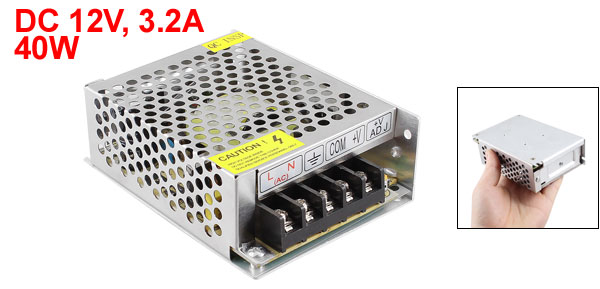 Product Name Switching Power Supply Model No. S-40-12 Input 110/220V±15% Output DC 12V, 3.2A DC Output Power 40W Terminal Quantity 5 Total Size 11 x 8 x 3.2cm / 4.3" x 3.1" x 1.3" (L*W*T) Case Material Metal Main Color Silver Tone Net Weight 207g Package Content 1 x Switching Power Supply - Reviews