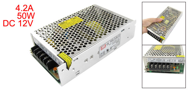 Product Name Switching Power Supply Input 100-120V AC 1.3A, 200-240V AC 0.65A 50/60Hz Output DC 12V 4.2A Power 50W Material Metal, Electronic Parts Main Color Silver Tone, Black Overall Size 15.8 x 9.7 x 3.8cm / 6.2" x 3.8" x 1.5"(L*W*T) Net Weight 442g Package Content 1 x Switching Power Supply - Reviews
