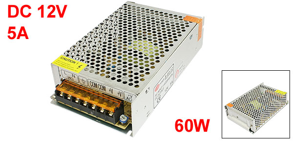 Item Name Switching Power Supply Model No. S-60-12 Power Type Constant Voltage Input AC 110/220V± 15% Output DC 12V, 5A DC Output Power 60W Size 16 x 9.8 x 4.3cm/ 6.3" x 3.9" x 1.7" (L*W*T) Case Material Metal Main Color Silver Tone Net Weight 318g Package Content 1 x Switching Power Supply - Reviews