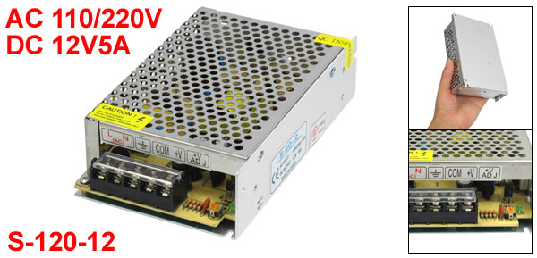 Item Name Switching Power Supply Model No. S-60-12 Input AC 110-220V DC Output DC 12V, 10A Power 60W Terminal Quantity 5 Total Size 20 x 9.6 x 4.2cm/ 7.9" x 3.8" x 1.65" (L*W*T) Case Material Metal Main Color Silver Tone Net Weight 317g Package Content 1 x Switching Power Supply - Reviews