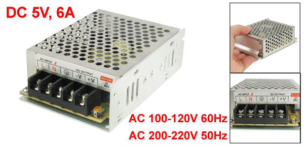 Output DC 5V, 6A Material Metal, Electronic Parts Size 11 x 7.7 x 3.6cm/ 4.3" x 3" x 1.4"(L*W*T) Color Silver Tone Net Weight 202g Package Content 1 x Power Supply - Reviews
