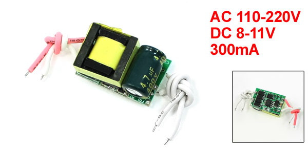 Application for 3x2W LED Input Voltage AC 110-220V Output Voltage DC 8-11V Constant Current 300mA±5% Size (not include cable) 25 x 14 x 10mm/ 1" x 0.7" x 0.55" (L*W*H) Material Electronics Color As Picture Show Weight 8g