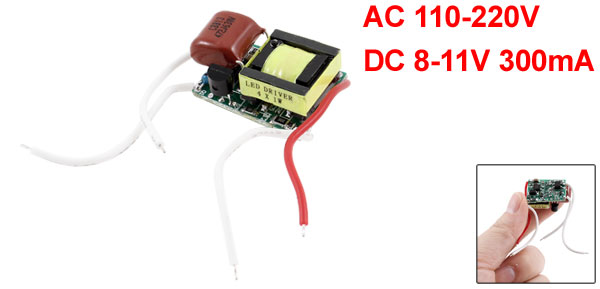 Application for 4 x 1W LED Input Voltage AC 110-220V Output Voltage DC 8-11V Constant Current 300mA±5% Size (not include cable) 25 x 18 x 12mm/ 0.98" x 0.71" x 0.47" (L*W*H) Material Electronics Color As Picture Show Weight 7g