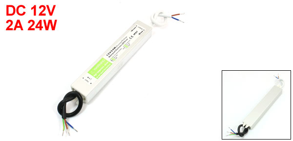 Product Name Waterproof LED Driver Input AC 110-240V 50/60Hz 0.39A 30W Output DC 12V±0.5V 2A 24W Protection Rank IP67 Overall Size(Approx.) 16 x 2.7 x 2cm/6.3" x 1.1" x 0.8"(L*W*T) Cable Length 10cm/3.9" Shell Material Aluminum Alloy, Plastic Main Color Silver Tone Net Weight 200g Package Content 1 x Waterproof LED Driver - Reviews