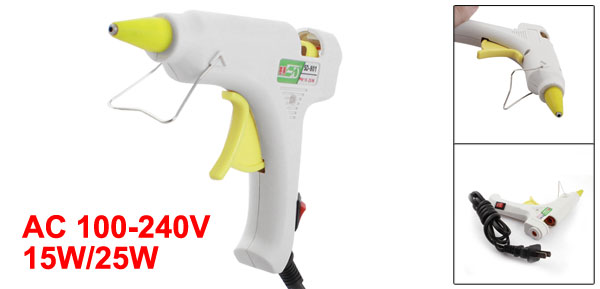 Product Name Hot Melt Glue Gun Main Material Plastic, Metal Model SD-801 Plug Type US Plug Input Voltage AC 100-240V, 50/60Hz Rated Power 15W/25W Adjustable Fit for Hot Melt Glue Stick Dia 7mm (Not Included) Glue Gun Nozzle Inner Dia 2mm Gun Dimension 13 x 11x 2cm /5.1" x 4.3" x 0.8" (L*W*H) Cable Length 100cm /3.3ft Weight 160g Package Content 1 x Hot Melt Glue Gun - Reviews