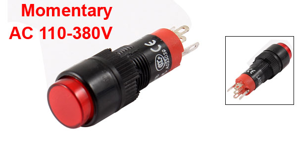 Item Name Push Button Switch Contact Type Momentary; SPDT Working Voltage AC 110-380V Button Color Red Mounting Thread Diameter 9.5mm / 0.37" Button Cap Dia 10mm /0.39" Terminals 5 Pin Overall Size 3.8 x 1cm/1.5" x 0.4"(L*D) Material Plastic, Electronic Parts Weight 3g Package Content 1 Pcs x Push Button Switch - Reviews
