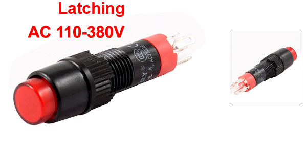 Item Name Push Button Switch Contact Type Latching; SPDT Working Voltage AC 110-380V Button Color Red Mounting Thread Diameter 8mm / 0.31" Button Cap Dia 7mm /0.28" Terminals 5 Pin Overall Size 3.8 x 1cm/1.5" x 0.4"(L*D) Material Plastic, Electronic Parts Weight 3g Package Content 1 Pcs x Push Button Switch - Reviews