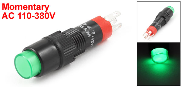 Item Name Push Button Switch Contact Type Momentary; SPDT Working Voltage AC 110-380V Button Color Green Mounting Thread Diameter 8mm / 0.31" Button Cap Dia 7mm /0.28" Terminals 5 Pin Overall Size 3.8 x 1cm/1.5" x 0.4"(L*D) Material Plastic, Electronic Parts Weight 3g Package Content 1 Pcs x Push Button Switch - Reviews