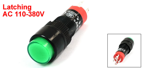 Item Name Push Button Switch Contact Type Latching; SPDT Working Voltage AC 110-380V Button Color Green Mounting Thread Diameter 9.5mm / 0.37" Button Cap Dia 10mm /0.4" Terminals 5 Pin Overall Size 3.8 x 1.2cm/1.5" x 0.47"(L*D) Material Plastic, Electronic Parts Weight 3g Package Content 1 Pcs x Push Button Switch - Reviews