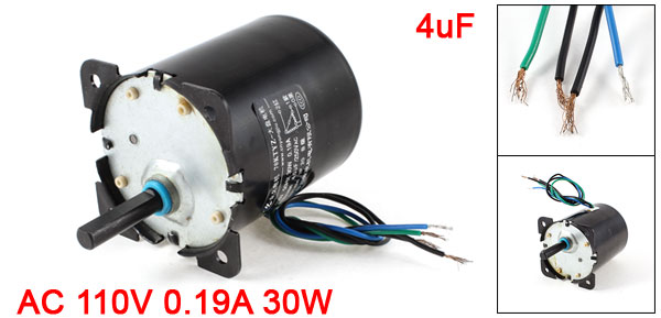 Product Name Synchronous Motor Rated Voltage AC 110V Rated Current 0.19A Rated Frequency 50Hz Power 30W Fit for Capacitor 4uF/250VAC Speed 32r/min Shaft Length 32mm /1.3" Shaft Diameter 8mm/0.3" Main Body Diameter 63mm/2.5" Mounting Hole Diameter 5mm/0.2" Mounting Hole Center Distance 50mm/ 2" Main Color Black Material Metal, Plastic Weight 549g Package 1 x Synchronous Motor - Reviews