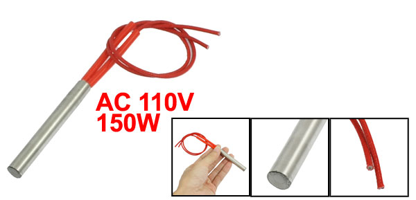 Product Name Cartridge Heater Material Stainless Steel, PVC, Nylon Rated Voltage AC 110V Power 150W Heater Size (Approx.) 9.5 x 70mm / 0.37" x 2.8" (D * L ) Wire Length (Approx.) 25.5cm / 10" Color Silver Tone, Red Weight 26g Package Content 1 x Cartridge Heater - Reviews