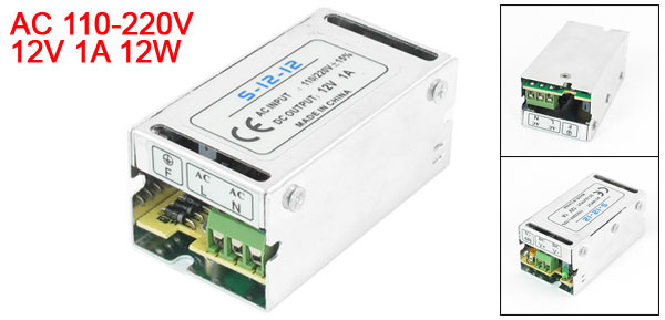 Output DC +12V, 1A DC Output Power 12W Size 7 x 3.9 x 3cm/ 2.8" x 1.5" x 1.2" (L*W*T) Case Material Metal Main Color Silver Tone Net Weight 64g Package Content 1 x Switching Power Supply - Reviews