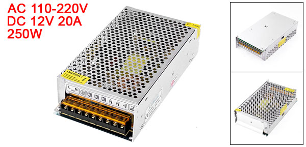 Output DC 12V 20A DC Output Power 250W Size 19.9 x 11 x 5cm/ 7.8" x 4.3" x 2" (L*W*T) Case Material Metal Main Color Silver Tone, Gray Net Weight 650g Package Content 1 x Switching Power Supply - Reviews