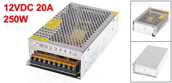 Output DC 12V 20A DC Output Power 250W Size 19.9 x 11 x 5cm/ 7.8" x 4.3" x 2" (L*W*T) Case Material Metal Main Color Silver Tone, Gray Net Weight 650g Package Content 1 x Switching Power Supply - Reviews