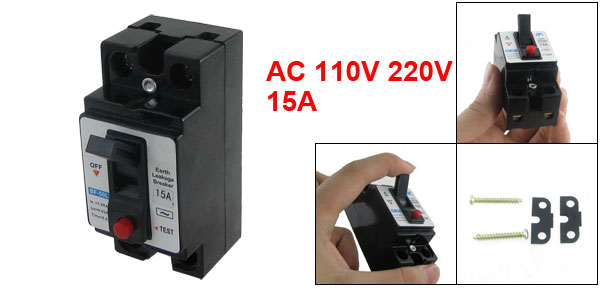 Product Name Earth Leakage Circuit Breaker Model No. BF-5L Rated Voltage AC 110V-220V Rated Current 15A Number of Poles 2P Rated Current Sensitivity 0.03A(30mA) Operating Time <0.03s Breaking Capacity 1.5KA Trip Type Mechanical Overall Size(Approx.) 70 x 32 x 52mm / 2.8" x 1.3" x 2.0"(L*W*H) Material Plastic, Electronic Parts Net Weight 97g Package Content 1 x Earth Leakage Circuit Breaker
