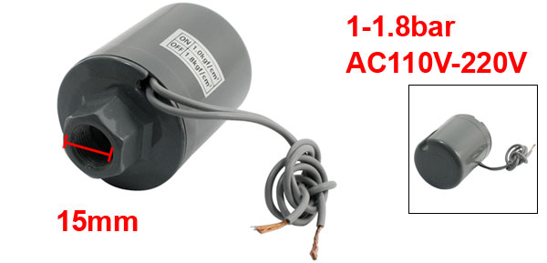 Product Name Water Pump Pressure Switch Controller Pressure Range 1-1.8bar Actact Type SPST Female Thread Type 15mm/0.6" Working Voltage AC110V-220V Preset Pressure Setting 1kgf/cm² /1bar(ON)