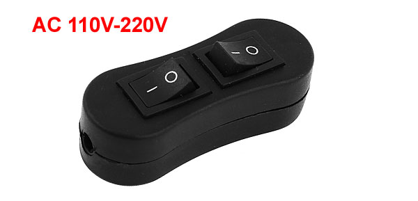 AC 110V-220V 2A Black Plastic ON OFF Dual Button In Line Cord Switch