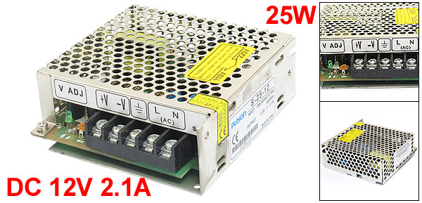 Output DC +12V 2.1A DC Output Power 25W Size 10 x 9.7 x 3.5cm/ 3.9" x 3.8" x 1.4" (L*W*T) Case Material Metal Main Color Silver Tone Net Weight 290g Package Content 1 x Switching Power Supply - Reviews