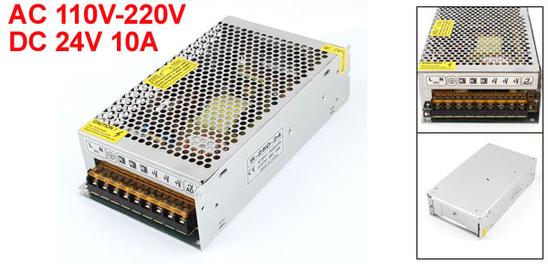Output DC 24V 10A Size 20 x 11 x 5cm/ 7.9" x 4.3" x 2" (L*W*T) Case Material Metal Main Color Silver Tone Net Weight 634g Package Content 1 x Power Supply - Reviews