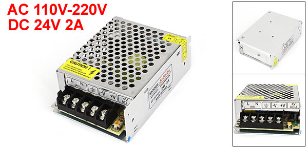 Main Color Silver Tone Input 110/120V(+/-15%) Brand DMiotech Net Weight 218g Country of Manufacture CHINA Model S-50-24 Package Content 1 x Switching Power Supply Terminal Quantity 5 DC Output DC 24V 2A Material Metal Total Size 11 x 7.7 x 3.7cm/ 4.3" x 3" x 1.5" (L*W*T) - Reviews