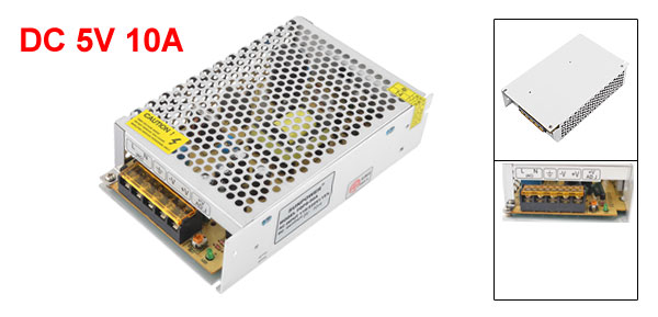 Output DC 5V 10A Size 16 x 10 x 4.2cm/ 6.3" x 3.9" x 1.7" (L*W*T) Case Material Metal Main Color Silver Tone Net Weight 322g Package Content 1 x Power Supply - Reviews