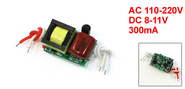 Application for 4x1W LED Input Voltage AC 110-220V Output Voltage DC 8-11V Constant Current 300mA±5% Size (not include cable) 25 x 18 x 10mm/ 1" x 0.7" x 0.55" (L*W*H) Material Electronics Color As Picture Show Weight 8g