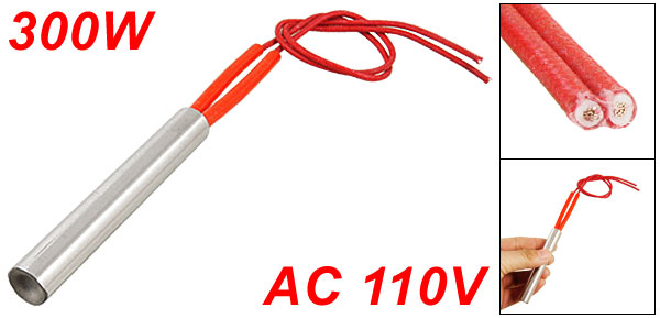 Product Name Cartridge Heater Material Stainless Steel, PVC, Nylon Rated Voltage AC 110V Power 300W Heater Size (Approx.) 12 x 80mm / 0.47" x 3.1" (D * L) Wire Length (Approx.) 27cm / 10.6" Color Red, Silver Tone Weight 48g Package Content 1 x Cartridge Heater - Reviews