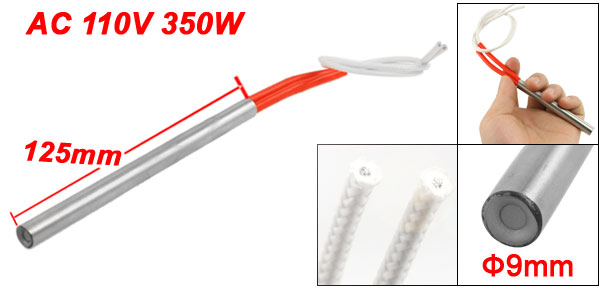Product Name Cartridge Heater Material Stainless Steel, PVC, Nylon Rated Voltage AC 110V Power 350W Heater Size (Approx.) 9 x 125mm/ 0.35" x 4.9" (D * L)