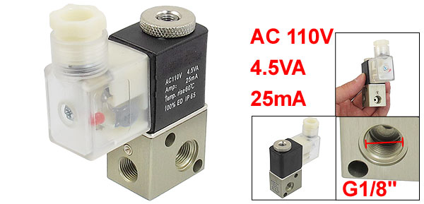 AC 110V 4.5VA 25mA 2 Position 3 Way Electromagnetic Solenoid Valve G1/8"