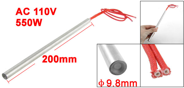 Product Name Cartridge Heater Material Stainless Steel, PVC, Nylon Rated Voltage AC 110V Power 550W Heater Size (Approx.) 9.8 x 200mm / 0.38" x 7.87" (D * L ) Wire Length (Approx.) 26.5cm / 10.4" Color Silver Tone, Red Weight 70g Package Content 1 x Cartridge Heater - Reviews