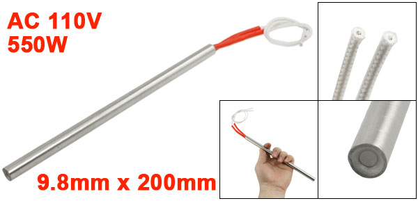 Product Name Cartridge Heater Material Stainless Steel, PVC, Nylon Rated Voltage AC 110V Power 550W Heater Size (Approx.) 9.8 x 200mm/ 0.38" x 7.87" (D * L) Wire Length (Approx.) 26cm/ 10.2" Color Red, Silver Tone Weight 72g Package Content 1 x Cartridge Heater - Reviews