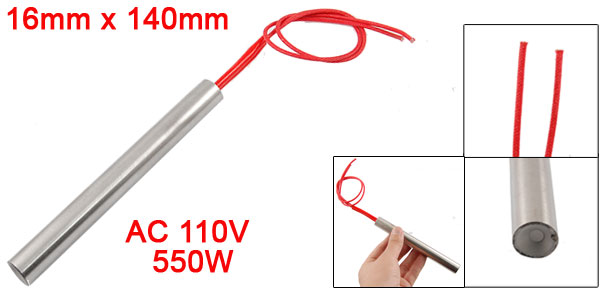 Product Name Cartridge Heater Main Material Stainless Steel, Nylon, PVC Rated Voltage AC 110V Power 550W Heater Size (Approx.) 16 x 140mm/ 0.62"x 5.5"(D * L)