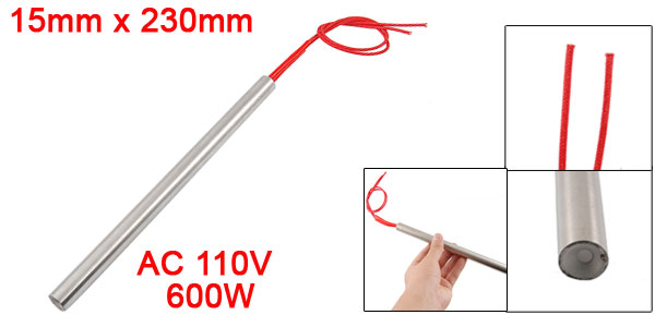Product Name Cartridge Heater Material Stainless Steel, PVC, Nylon Rated Voltage AC 110V Power 600W Heater Size (Approx.) 15 x 230mm/ 0.6" x 9" (D * L)