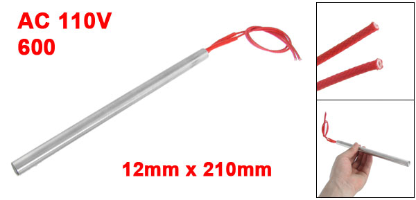 Product Name Cartridge Heater Material Stainless Steel, PVC, Nylon Rated Voltage AC 110V Power 600W Heater Size (Approx.) 12 x 210mm / 0.47" x 8.3" (D * L ) Wire Length(Approx.) 28.5cm / 11.2" Color Silver Tone, Red Weight 101g Package Content 1 x Cartridge Heater - Reviews