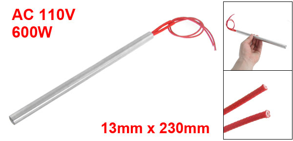Product Name Cartridge Heater Material Stainless Steel, PVC, Nylon Rated Voltage AC 110V Power 600W Heater Size (Approx.) 13 x 230mm / 0.51" x 9" (D * L ) Wire Length(Approx.) 28.5cm / 11.2" Color Silver Tone, Red Weight 122g Package Content 1 x Cartridge Heater - Reviews