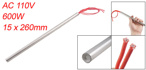 Product Name Cartridge Heater Material Stainless Steel, PVC, Nylon Rated Voltage AC 110V Power 600W Heater Size (Approx.) 15 x 260mm/ 0.59'' x 10.2'' (D * L)