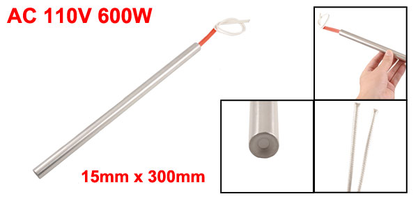 Product Name Cartridge Heater Material Stainless Steel, PVC, Nylon Rated Voltage AC 110V Power 600W Heater Size (Approx.) 15 x 300mm/ 0.59" x 11.8" (D*L)