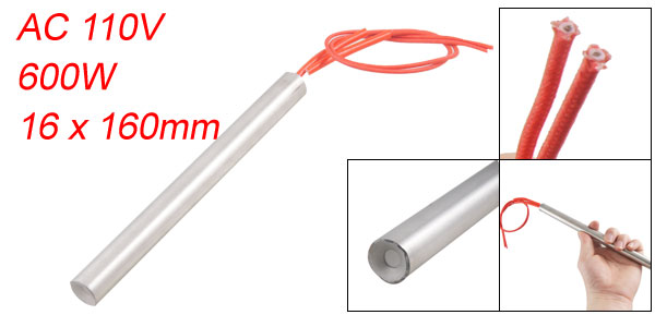 Product Name Cartridge Heater Material Stainless Steel, PVC, Nylon Rated Voltage AC 110V Power 600W Heater Size (Approx.) 16 x 160mm/ 0.63'' x 6.3'' (D * L)