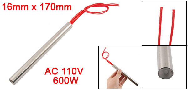 Product Name Cartridge Heater Material Stainless Steel, PVC, Nylon Rated Voltage AC 110V Power 600W Heater Size (Approx.) 16 x 170mm/ 0.63" x 6.7" (D * L)