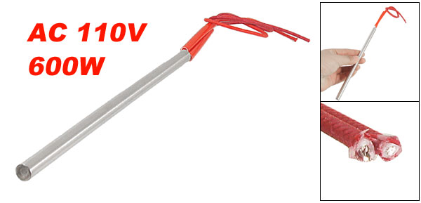 Product Name Cartridge Heater Material Stainless Steel, PVC, Nylon Rated Voltage AC 110V Power 600W Heater Size (Approx.) 8 x 180mm / 0.31" x 7" (D * L) Wire Length (Approx.) 27cm / 10.6" Color Red, Silver Tone Weight 52g Package Content 1 x Cartridge Heater - Reviews
