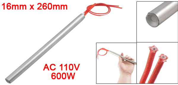 Product Name Cartridge Heater Material Stainless Steel, PVC, Nylon Rated Voltage AC 110V Power 600W Heater Size (Approx.) 16 x 260mm/ 0.63'' x 10.2'' (D * L)