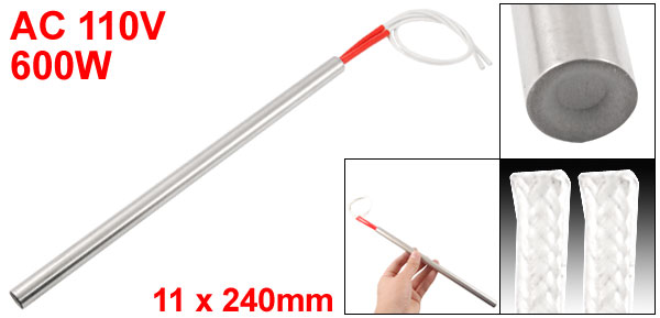 Product Name Cartridge Heater Material Stainless Steel, PVC, Nylon Rated Voltage AC 110V Power 600W Heater Size (Approx.) 11 x 240mm/ 0.43" x 9.4" (D * L)