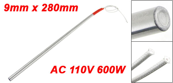 Product Name Cartridge Heater Material Stainless Steel, PVC, Nylon Rated Voltage AC 110V Power 600W Heater Size (Approx.) 9 x 280mm/0.4'' x 11'' (D * L)
