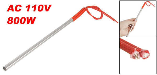 Product Name Cartridge Heater Material Stainless Steel, PVC, Nylon Rated Voltage AC 110V Power 800W Heater Size (Approx.) 8 x 200mm / 0.31" x 7.9" (D * L) Wire Length (Approx.) 27cm / 10.6" Color Red, Silver Tone Weight 55g Package Content 1 x Cartridge Heater - Reviews