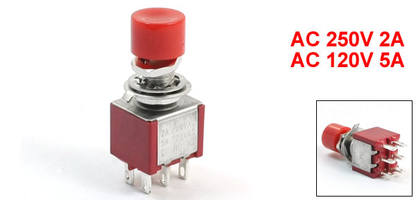 AC 120V 5A Red Cap 6 Pin DPDT 2 Positions Momentary Mini Push Button Switch