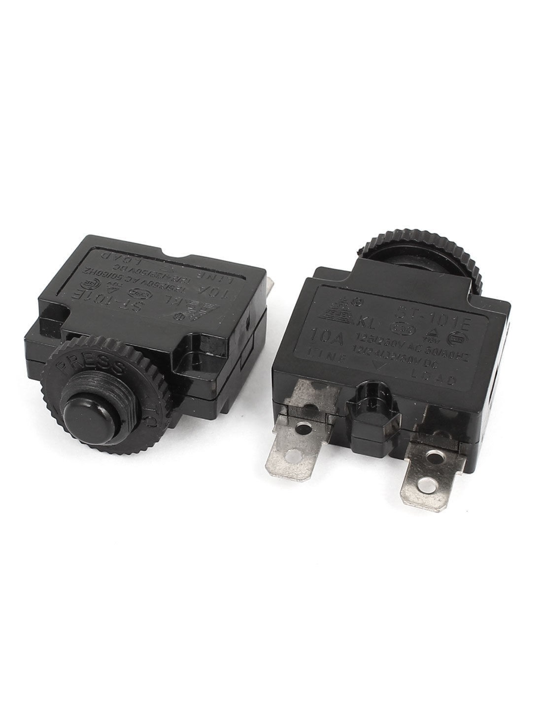 AC 125/250V 10A Plastic 2 Pins Circuit Breaker Overload Protector Black 2pcs